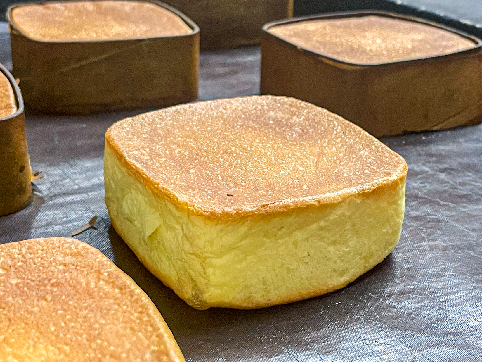 微粉砕した小麦と、電気分解したアルカリイオン水を使用し長時間発酵させ、生地の水和を促進することで水分含有量の多いパンを作ります。焼成後は-35度の急速凍結機で一気に冷やし、水分の蒸発による劣化を止めます。食べる際には凍ったままトーストすることで、さらなる「しっとり感」を得られます。