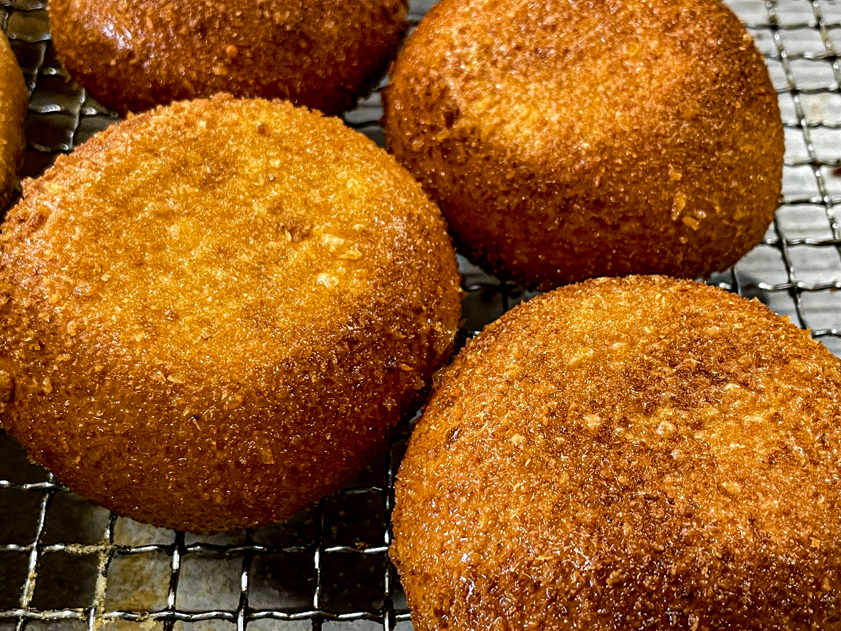パンの中に具が入ったカレーパンのような惣菜パンは、冷凍状態のまま電子レンジで20~30秒温めてからトースターで2~3分温めてください。