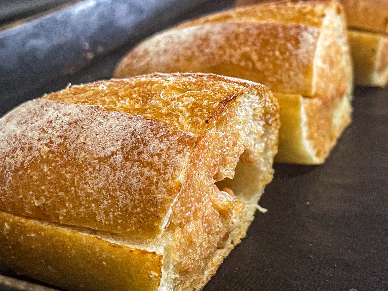 解凍したパンはトースターで2~3分温めますと、よりおいしく、出来立ての風味をお楽しみにいただけます。